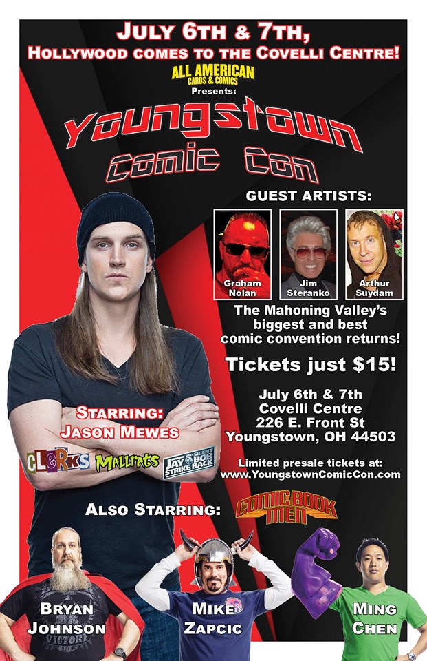 First up we’ll be headed out to Youngstown Comic Con on July 6th and 7th to see Steranko, Jason Mewes and sell some comics. What a weird world to put them both in the same room.