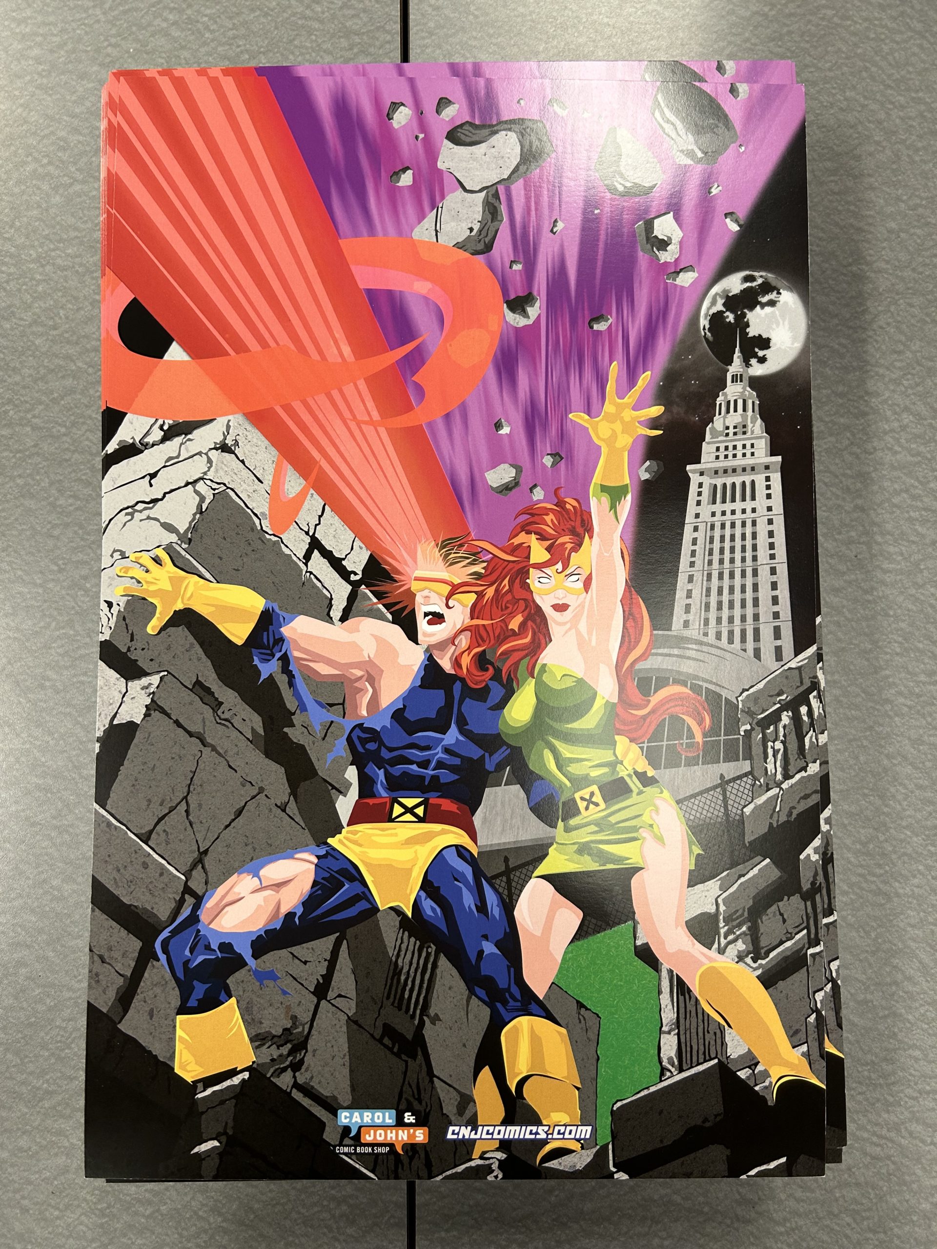 So, as a special bonus for shopping with us this weekend, we took four of our most popular 11×17 lithographs and reprinted them without any text. All four have elements of Cleveland hidden in them. See Spider-Man getting his alien symbiote from Secret Wars #8 in the Flats! Watch Wolverine cut his way through the Hellfire Club in X-Men #133 on East 4th Street! Observe Scott and Jean’s final showdown from X-Men #137 in Public Square! Witness Phoenix rises from the flames in X-Men #101 above Lake Erie! These four prints are FREE with any purchase all weekend long! (We will also be giving them away at Genghis Con as well.) This is our way of reminding everyone to #ShopSmall this holiday season!