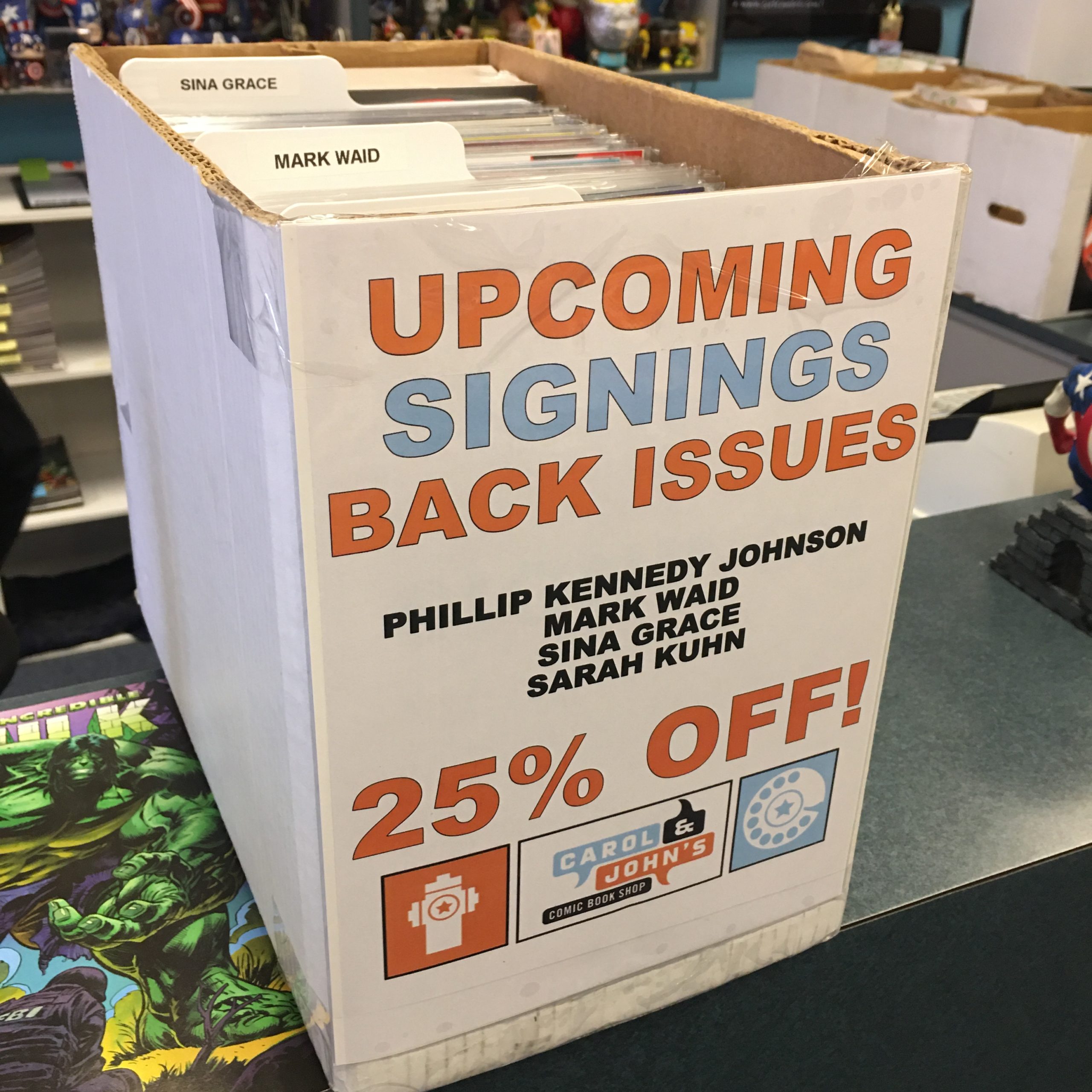 We are pulling back issues by these creators to make it easy for you to find something to have signed! We’re stocking up on trades as well!