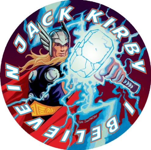 We hope to have the stickers available all weekend long in case you can’t make it in one Thursday. Stop by anytime, drop two bucks in the jar, and you can let everyone know that on this day and always “I BELIEVE IN JACK KIRBY!