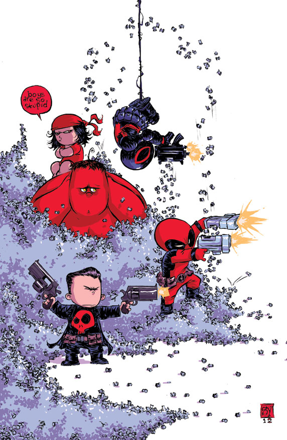 Also coming out that day? The long awaited destined to be a cult hit THUNDERBOLTS #1 by Danial Way and Steve Dillion! A new anti team staring Venom, the Punisher, Deadpool, Elektra and Red Hulk! For only $2.99! Here’s the amazing Young Baby Variant…