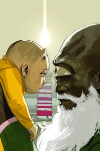 PLUS! Everybody who stops in will get a lithograph with the Young Baby Variant Cover (which is the best one yet) and a free button!