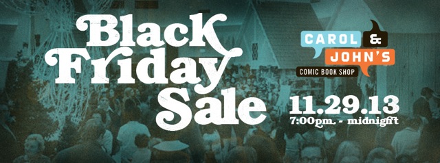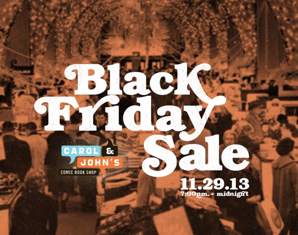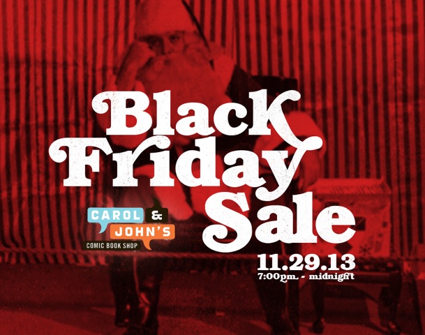 Our Black Friday event is one we’re very sentimental about. Ask anyone who’s been around the shop long enough over our 23 year history about how fun it is. Beyond shopping there’s a feeling of everyone being on the same page and hanging out and talking comics. This is where our current event driven business model began 18 years ago. We won’t let you down. So stop on by and buy some comics!