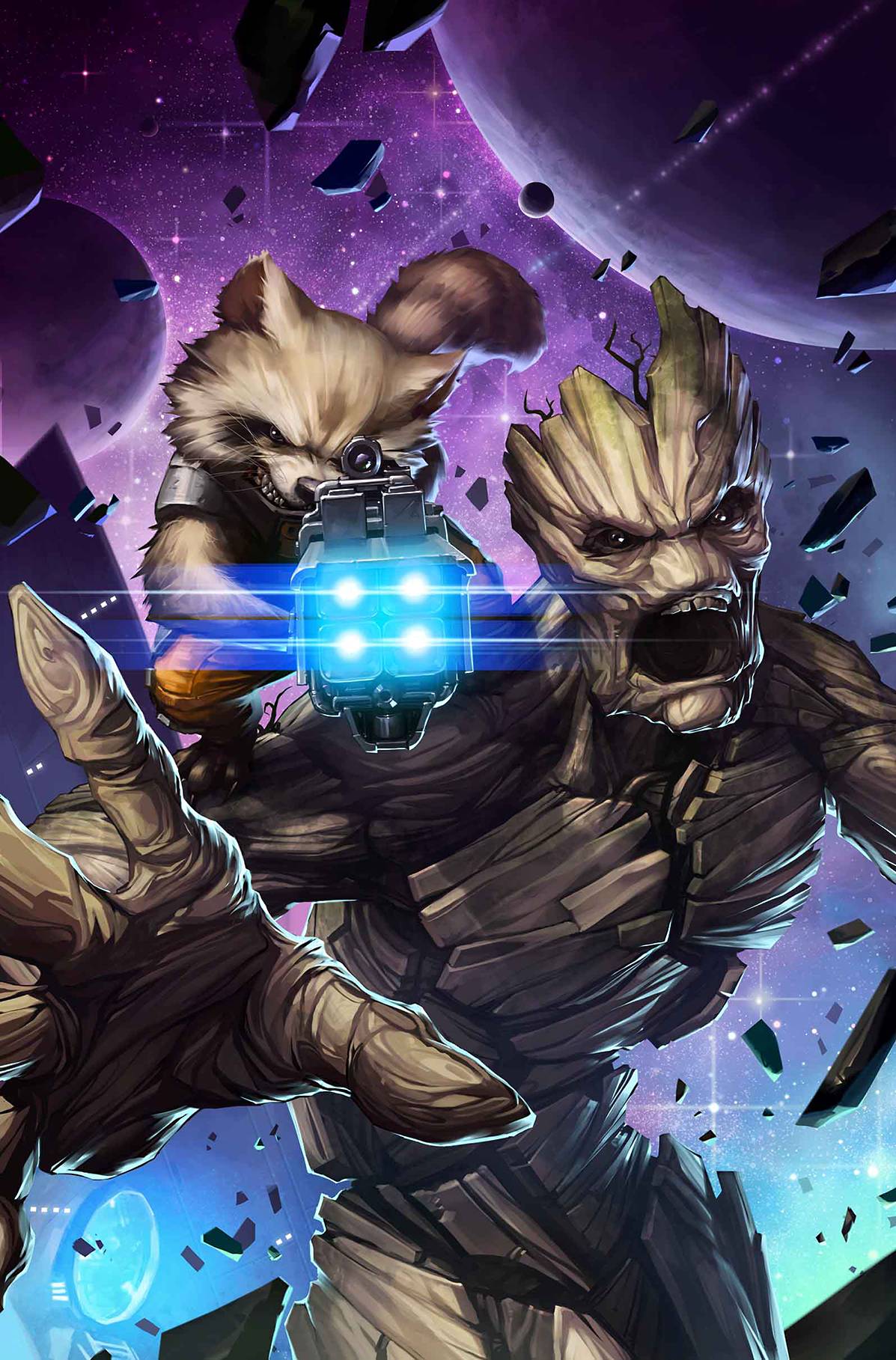 This one shot is set in Marvel’s Movie Universe and features a new Rocket Raccoon and Groot Story, also well as a reprint of a classic battle between Drax The Drestroyer and Thor! Whew. That’s alot of GOTG.