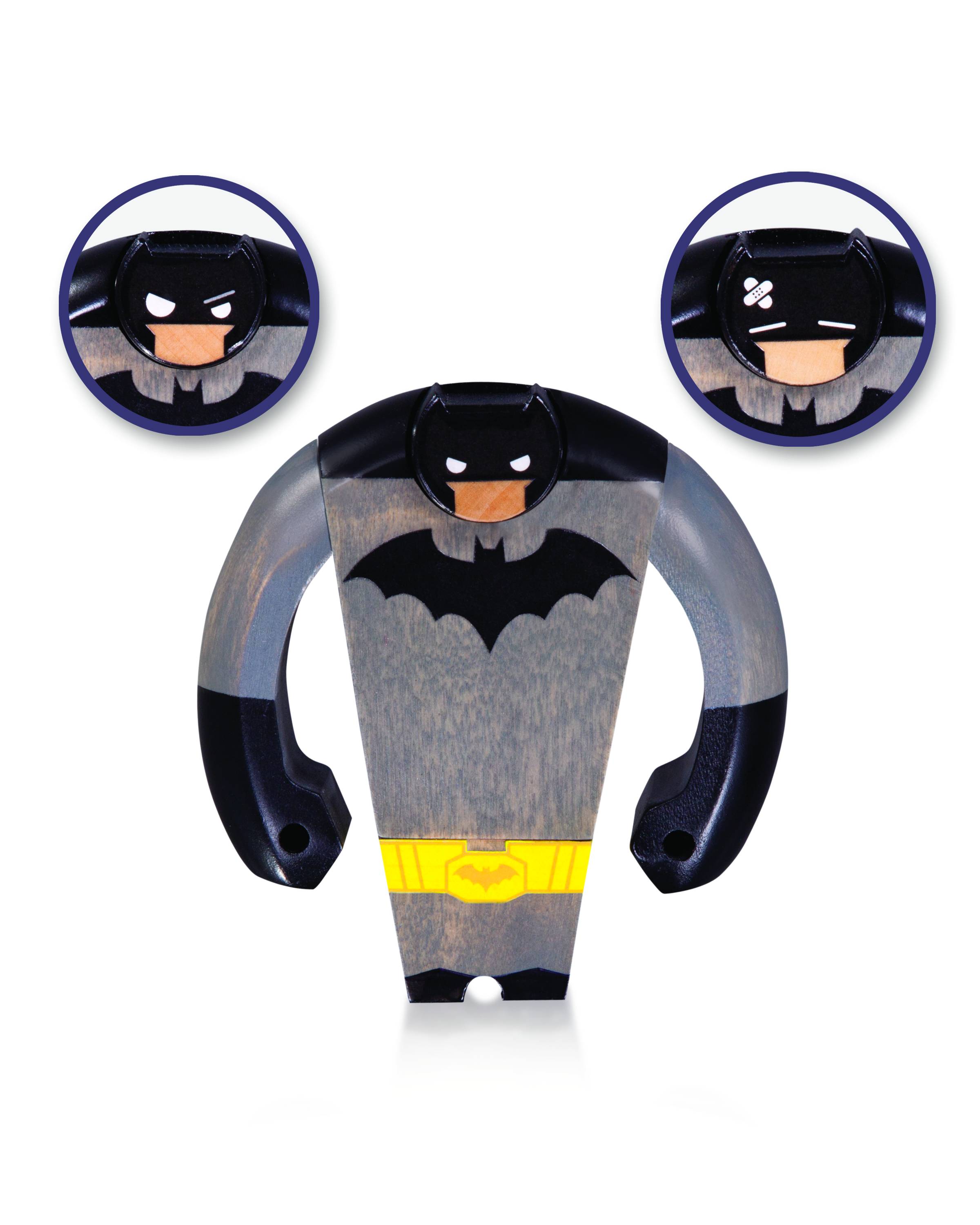 Only $12.95, and made completely of eco friendly rubberwood with interchangeable parts. Both Batman and Superman are available. I’ve seen them in person and they have a great feel to them.