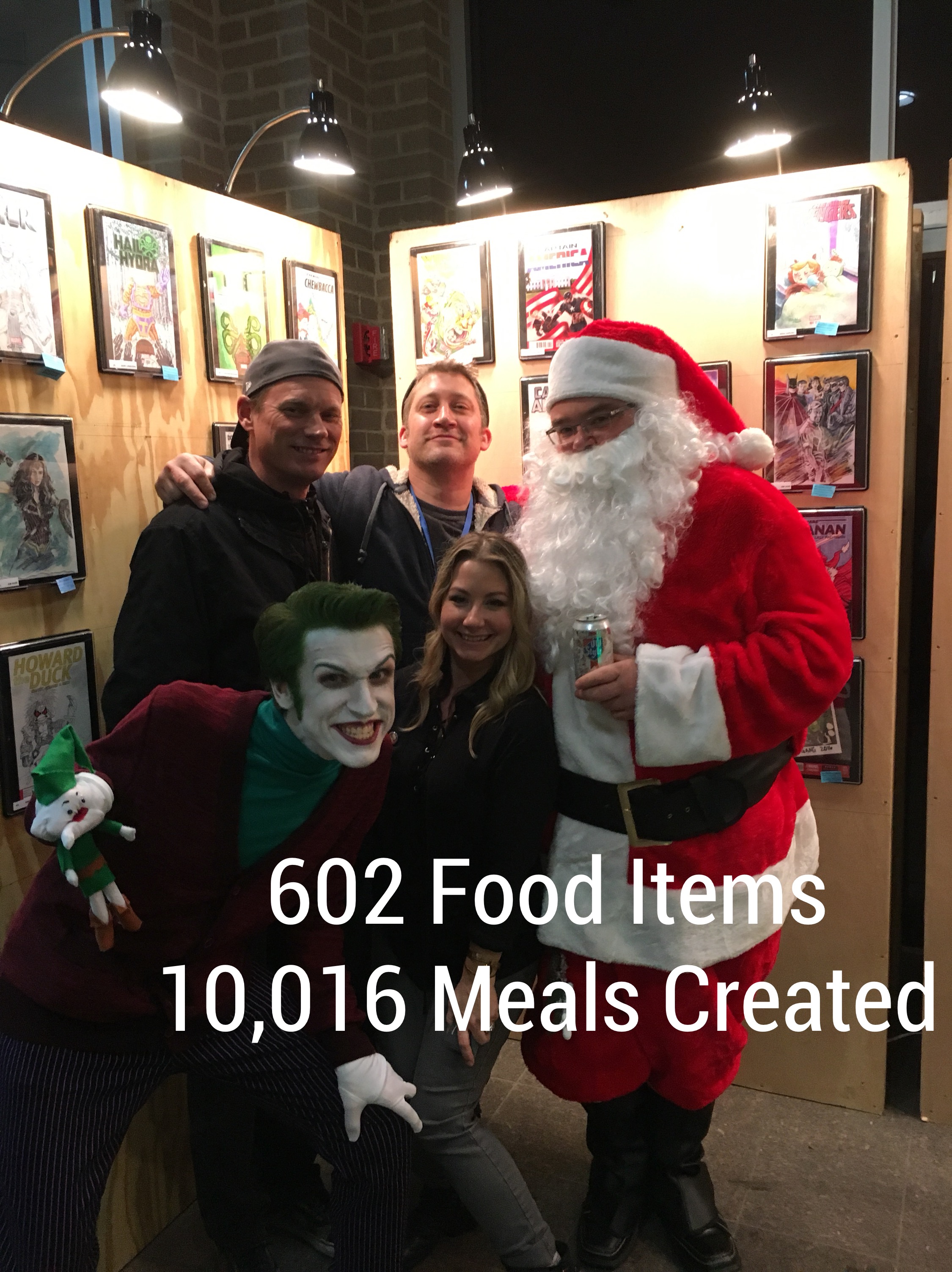 With the support of our community we were able to raise enough money to create over 10,000 meals as well as collecting over 600 food items! (and we had a lot of fun doing it.)