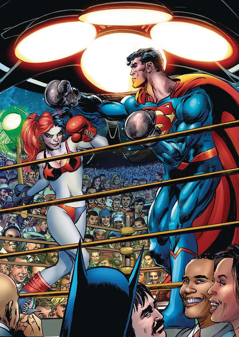 The same aliens that brought about the fight between Superman and Ali return to match up Kal and Harley. Encase you didn’t know, Adams was the guy who drew the original story, so this really is a big deal.