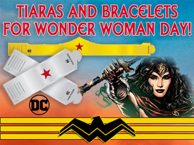 We have 400 of each book to give away, as well as 250 sets of WW Tiara’s and Bracelets. Made of cardboard they look like this: