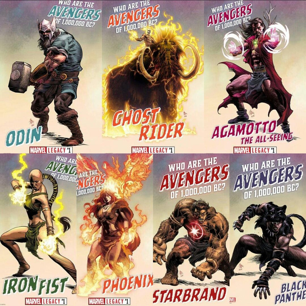 This issue also introduces the Avengers of one million BC, whose roster includes many of Marvel’s iconic characters who pass their mantle on over the generations, such as Doctor Strange, Phoenix, Iron Fist, Black Panther, Ghost Rider, Odin and Starbrand.