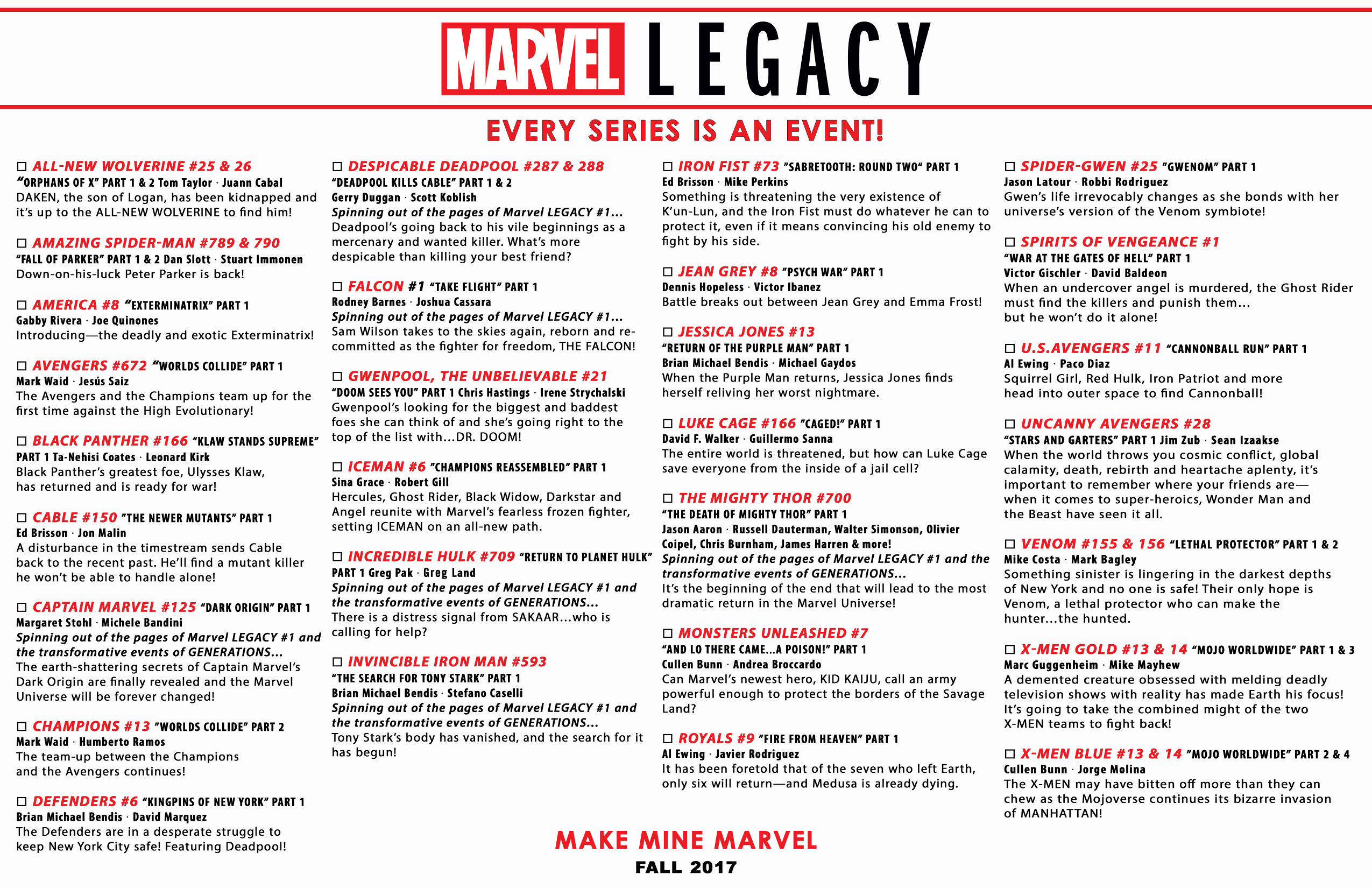If you enjoy Marvel Legacy and want to read further after that, here’s a checklist for all the new storylines beginning in October.