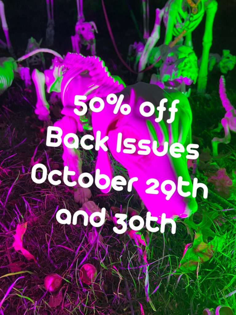 This weekend we’ll be celebrating Halloween by having 50% off back issues all weekend, including the wall!
