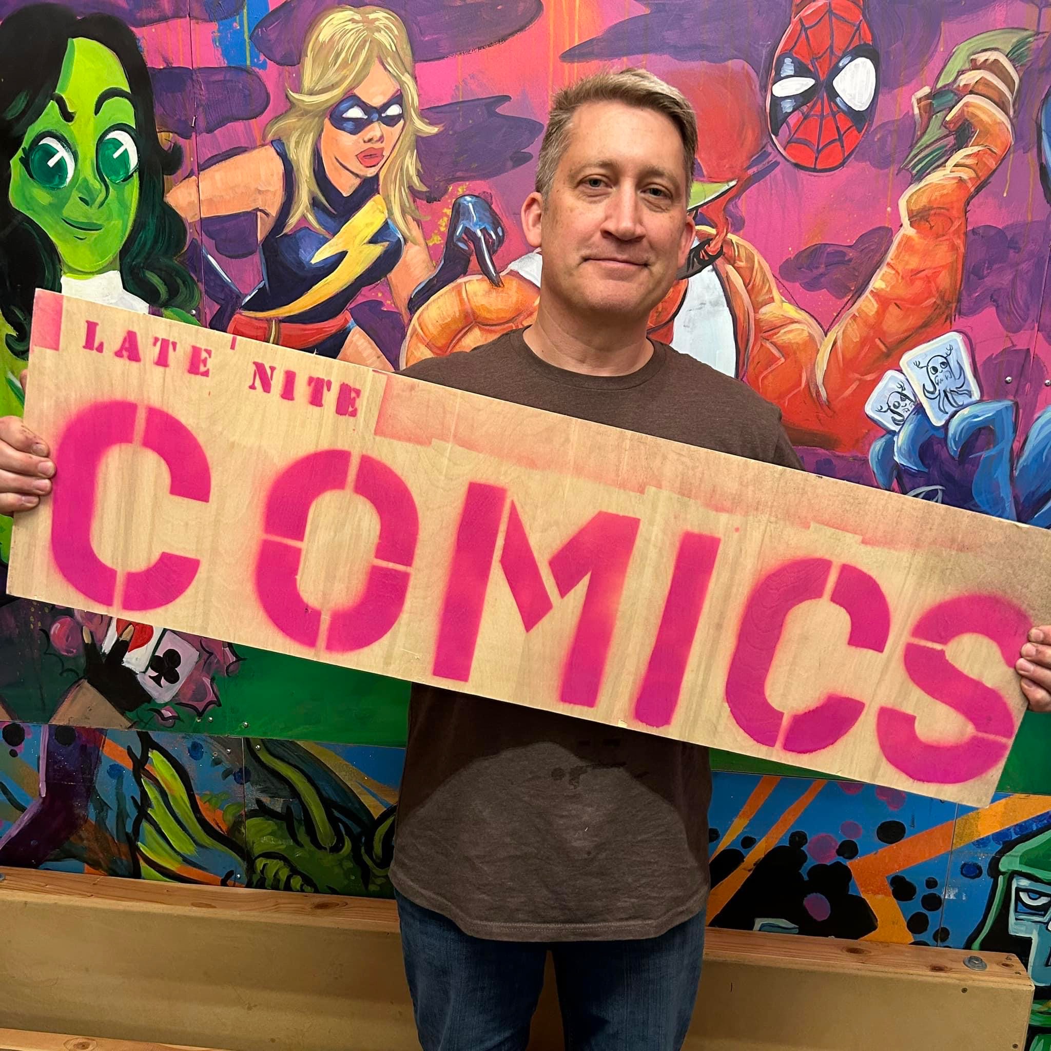 Third, this Thursday, the 18th, from 8 pm to midnight, is Late Nite Comics! It’ll be Marvel-ous! We’ll have 40 long boxes of new unprocessed Marvel dollar stock on the table, and back issues will be 50% off! (Except for the wall books.)