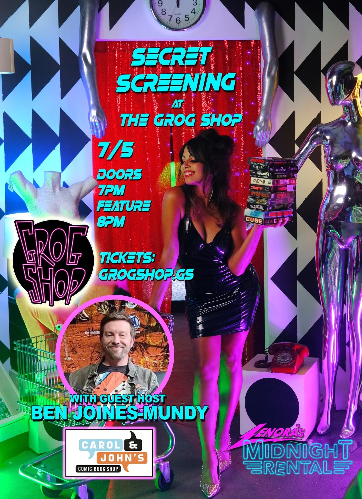 Ben is co-hosting again with Lenora at her next Midnight Rental Secret Screening at the Grog Shop on Wednesday, July 5th! Doors at 7pm, and there is an hour of sweet trailers and old local commercials before the secret film screens at 8pm. These are super fun! Maybe we’ll see you there!