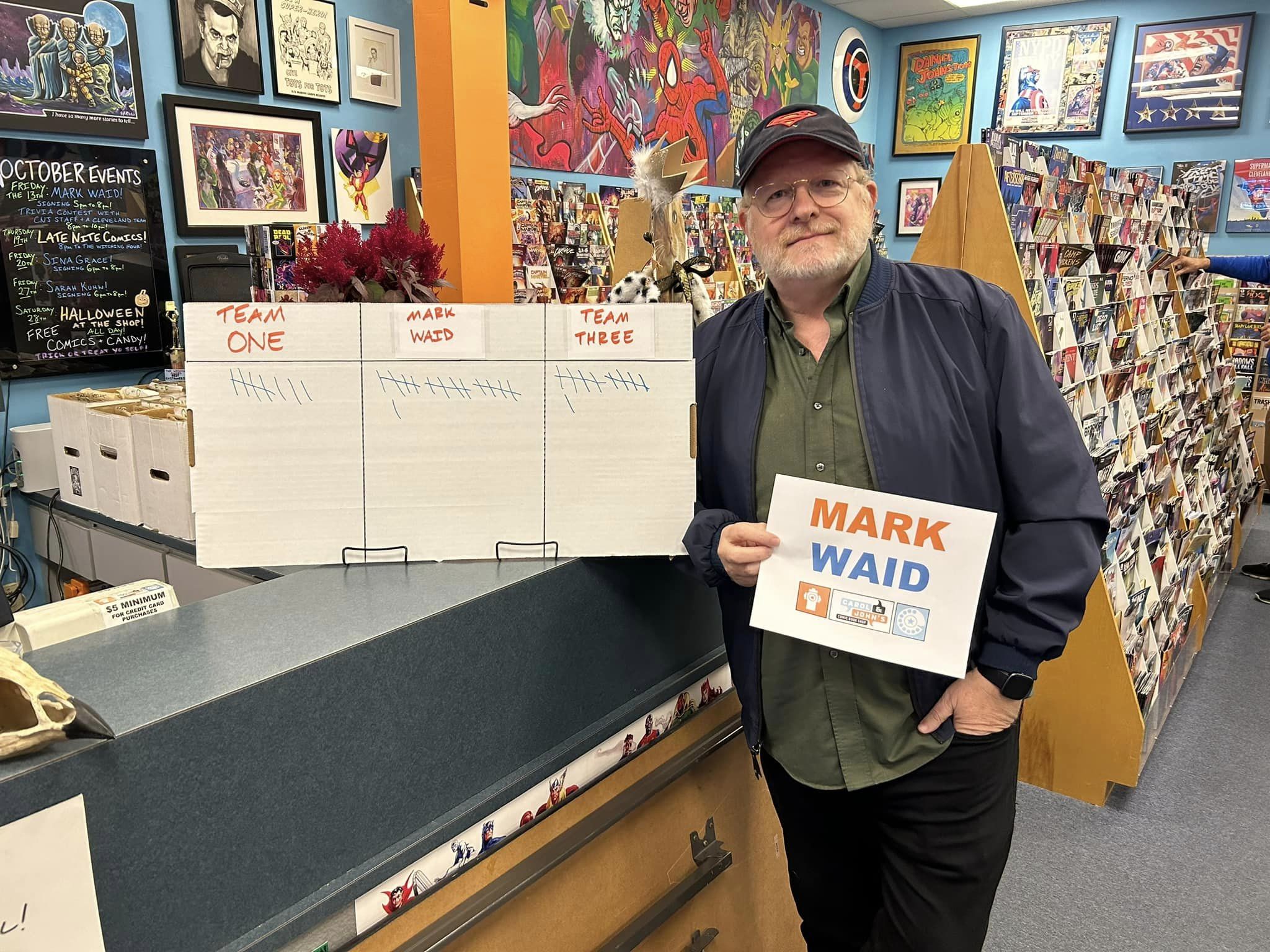 Thanks to everyone who came out for the Mark Waid signing and trivia showdown. To the surprise of no one, Waid was the champion! We did stream the event on Facebook Live, so you can find it on our Facebook page and our YouTube page now.