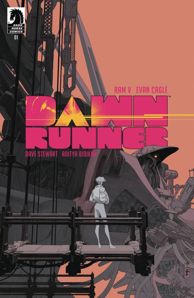 New all-ages sci-fi story from writer Ram V and artist Evan Cagle! Humanity has been fighting the Tetza for almost a century. A portal opened in the sky above Guatemala. And the Tetza came through. An alien species, kaiju-like, with their only common feature being their massive size and near-impervious skin. Five corporations use the world’s resources to build Iron Kings, giant mechs that are the only things that can hunt down the aliens. The greatest pilot, Anita Marr, is chosen to unveil Cordonware’s newest prototype, Dawnrunner. This could change the tide in humanity’s favor, but there may be something in this prototype that Marr is not prepared for.