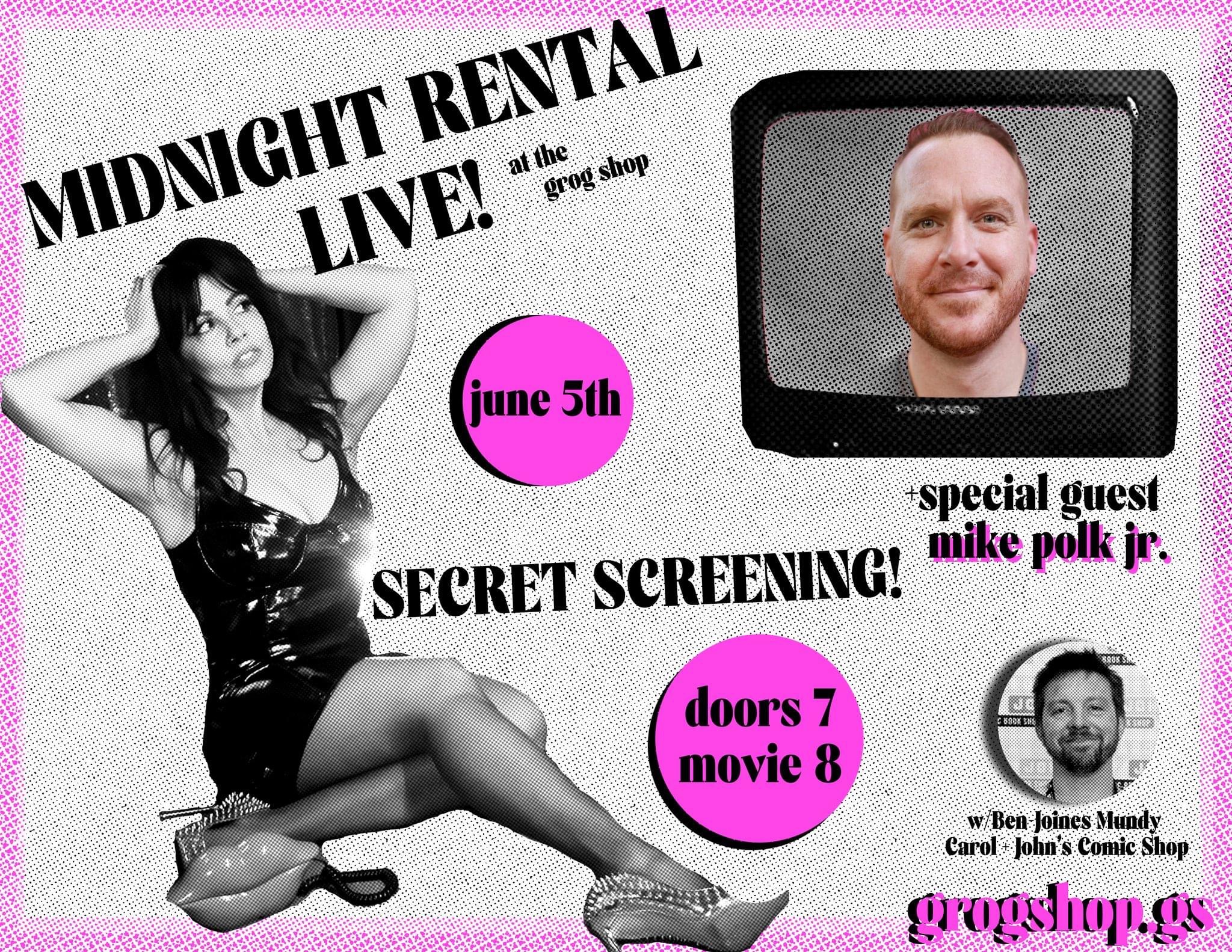 This Wednesday the 5th is the monthly Midnight Rental Secret Screening at the Grog Shop! Come out and watch a crappy movie co-hosted by Ben! Doors at 7pm, and the show starts at 8pm! Only $10!