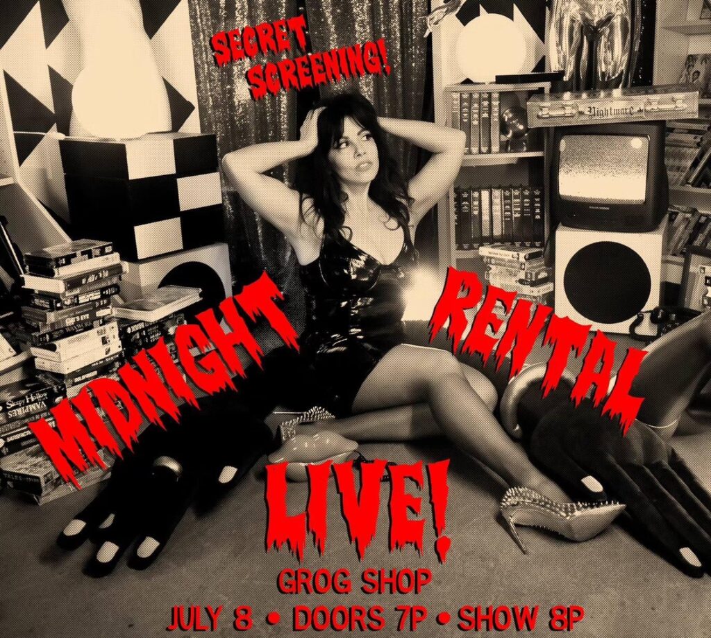 Second, Monday, July 8th Ben will be co-hosting the Midnight Rental Secret Screening at the Grog Shop! Yes, it’s on a Monday this month! Doors at 7pm, show at 8pm, only $10!