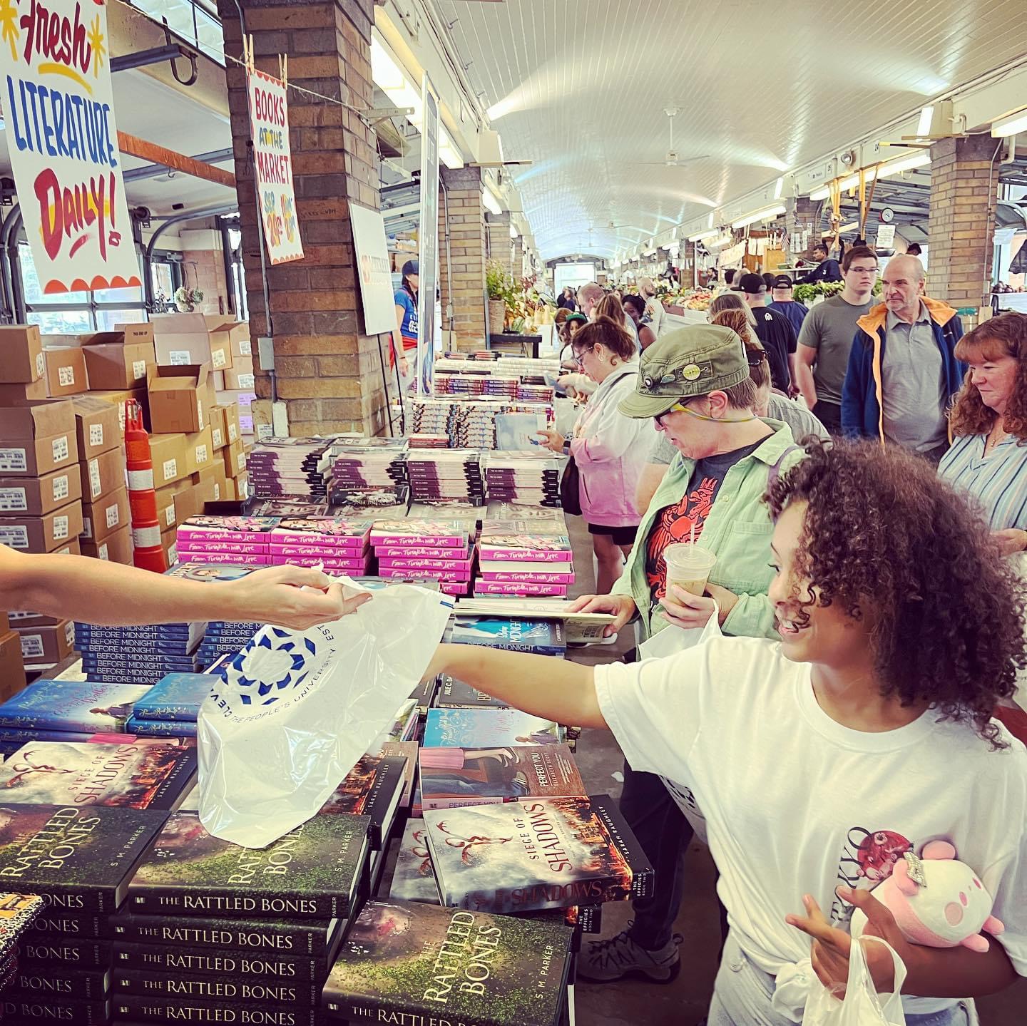 It’s be a basket raffle system, so you put the ticket in the basket for the book you want to win. No need to be present, we’ll pull the winners that night live on our facebook page and you’ll be notified if you win