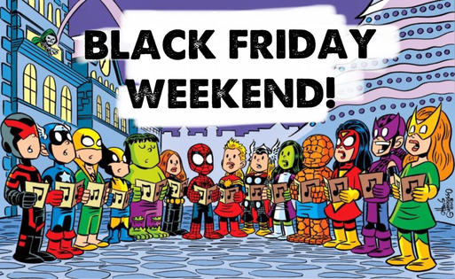 Rest up on Thursday, so you’re ready for our Black Friday weekend sale! Running Friday the 29th through Sunday December 1st, we’ll have 50% off all back issues, and the foyer will be loaded up with dollar stock, and if you get 100 or more dollar books they’ll be 50 cents each! The perfect time to start your holiday shopping!