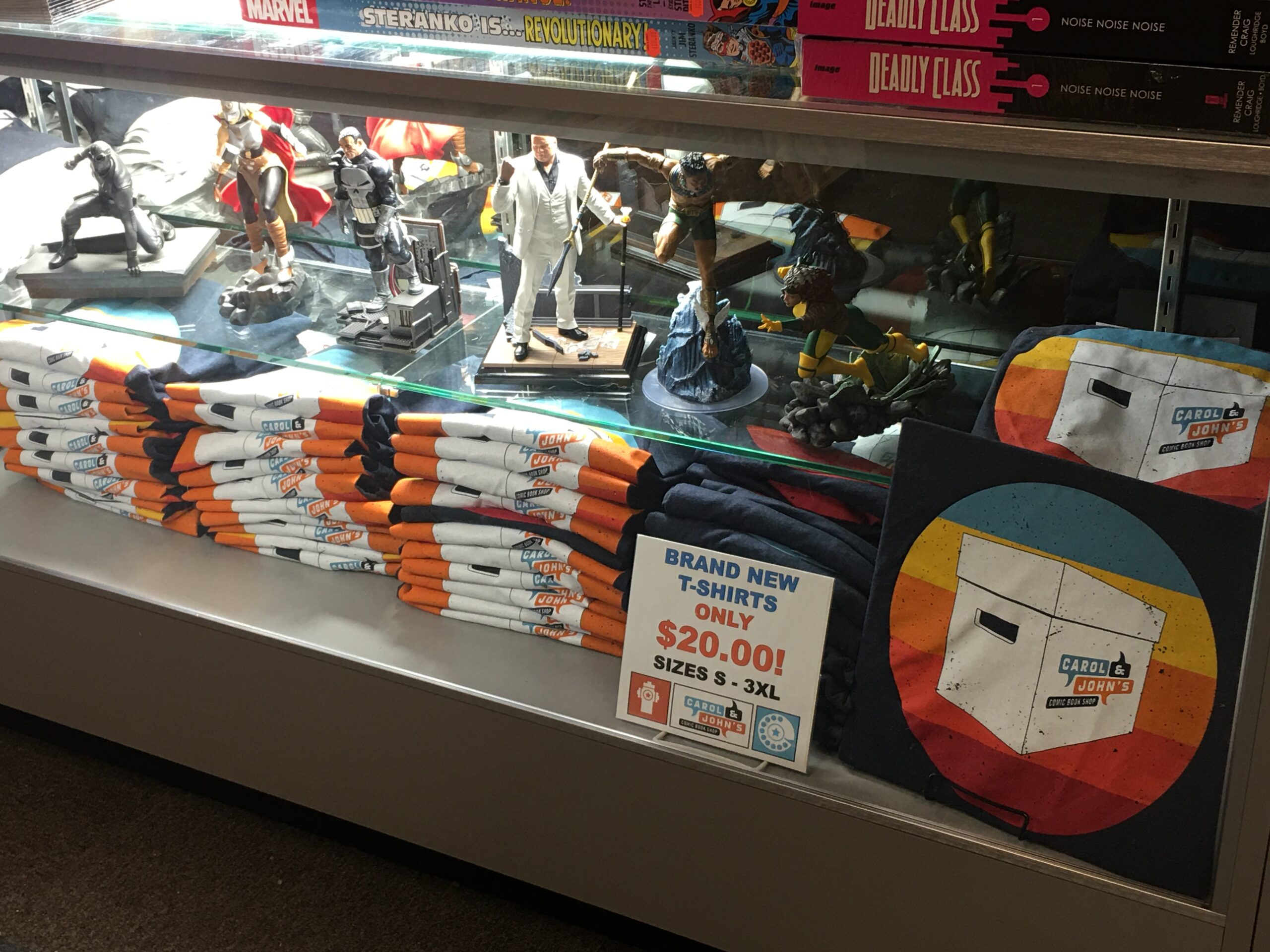 We just did a restock of sizes for our shop shirts, so if you needed a 2XL or 3XL, they’re back!