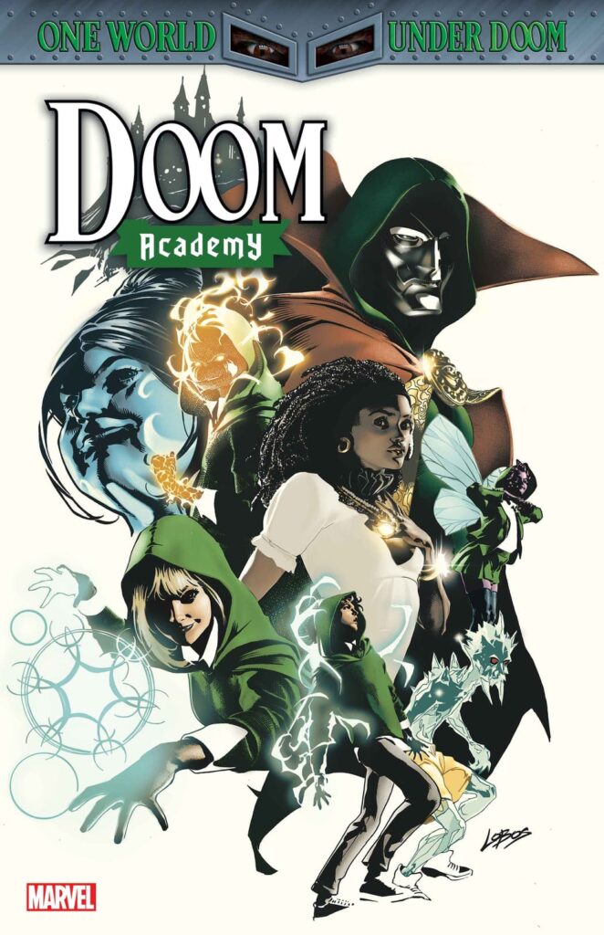 Writer Mackenzie Cadenhead and artist Pasqual Ferry invite the former Strange Academy students to attend the new Sorcerer Supreme’s Doom Academy. Relocated from New Orleans to Latveria, the Strange students, and some staff, are starting the semester with new friends and new threats, new magic and new cliques. And paintings of Doom everywhere, that may or may not be watching everything. Joining the Doom Academy Dispatch, Zoe and Doyle meet Scoop, who gives them the scoop on the school, and on the mysterious voice Zoe hears in her dorm room. Even though they’re not at Strange Academy anymore, things will still be strange because, “You belong to Doom!” For the semester. Students, make sure you sign up for one of the mandatory after school activities, including Dungeons of Doom and the Anti-Reed Society!