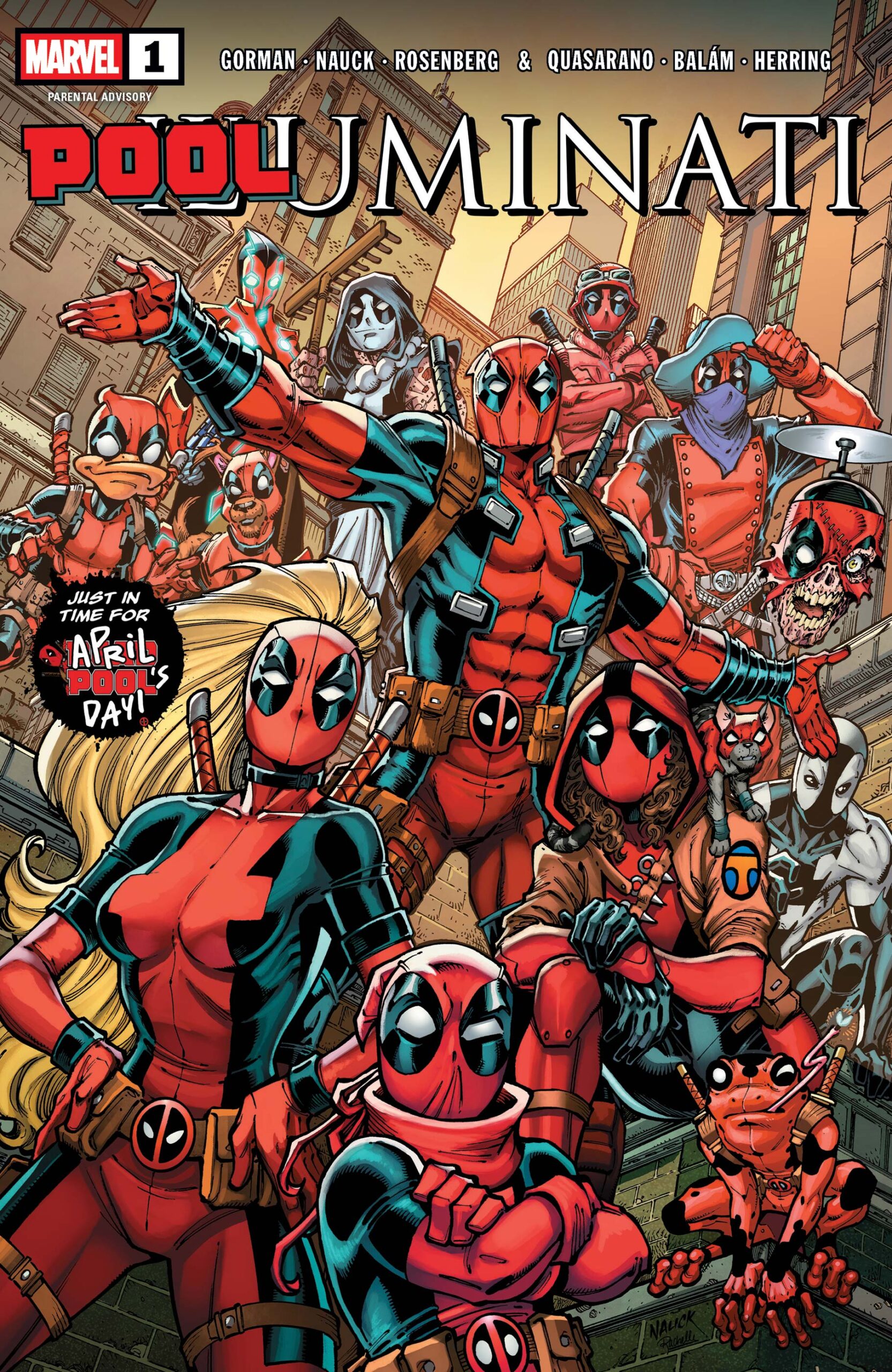 The elite ‘Pools assemble in Zac Gorman and Todd Nauck’s one-shot! There are those who hold power, and those who hold the secret power in the world. Those who shape the world around us, who pull the strings, unseen. They are…the Pooluminati. Or, wait, no, that’s the Illuminati, so what the heck does the Pooluminati do? It’s too secret…but Wade Wilson is about to find out! The most elite Deadpools across the Multiverse assemble, and they need the 616’s Deadpools. But will Wade (with Ellie’s help) prove himself worthy of the Pooluminati? And even if he does…will the conspiracy theory they uncover spell disaster for ‘Pools everywhere? Plus: A Princess and Elliepool short by Alexis Quasarano and Enid Balám!