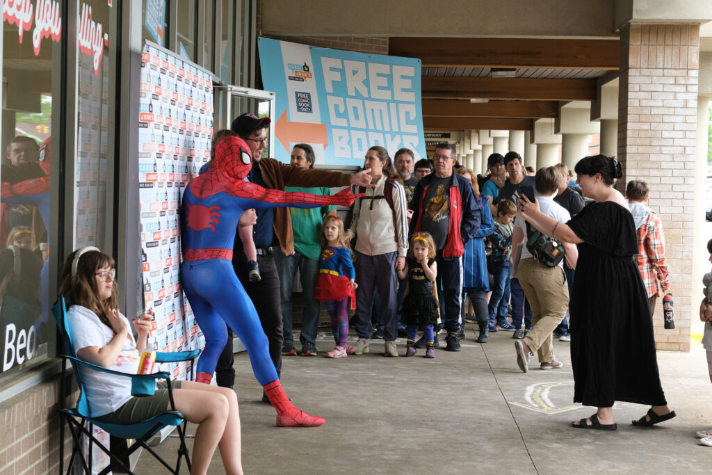 All are encouraged to wear their full comic book regalia, costumes included. Bring a camera, as many cosplay groups show up early in the day to add to the fun.