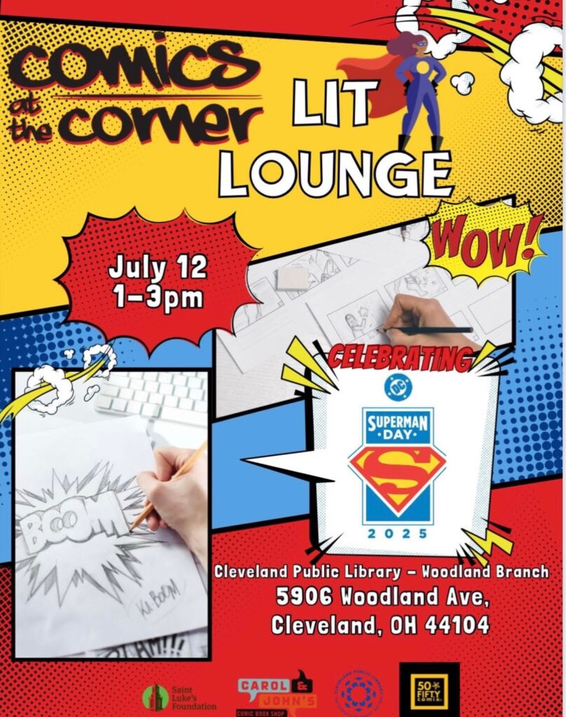 Our friends at Comics at the Corner are hosting a Lit Lounge on July 12th from 1pm to 3pm, and we’ll be providing them with free comics! They’re a great nonprofit that supports literacy for every age in Cleveland, so show them some support!