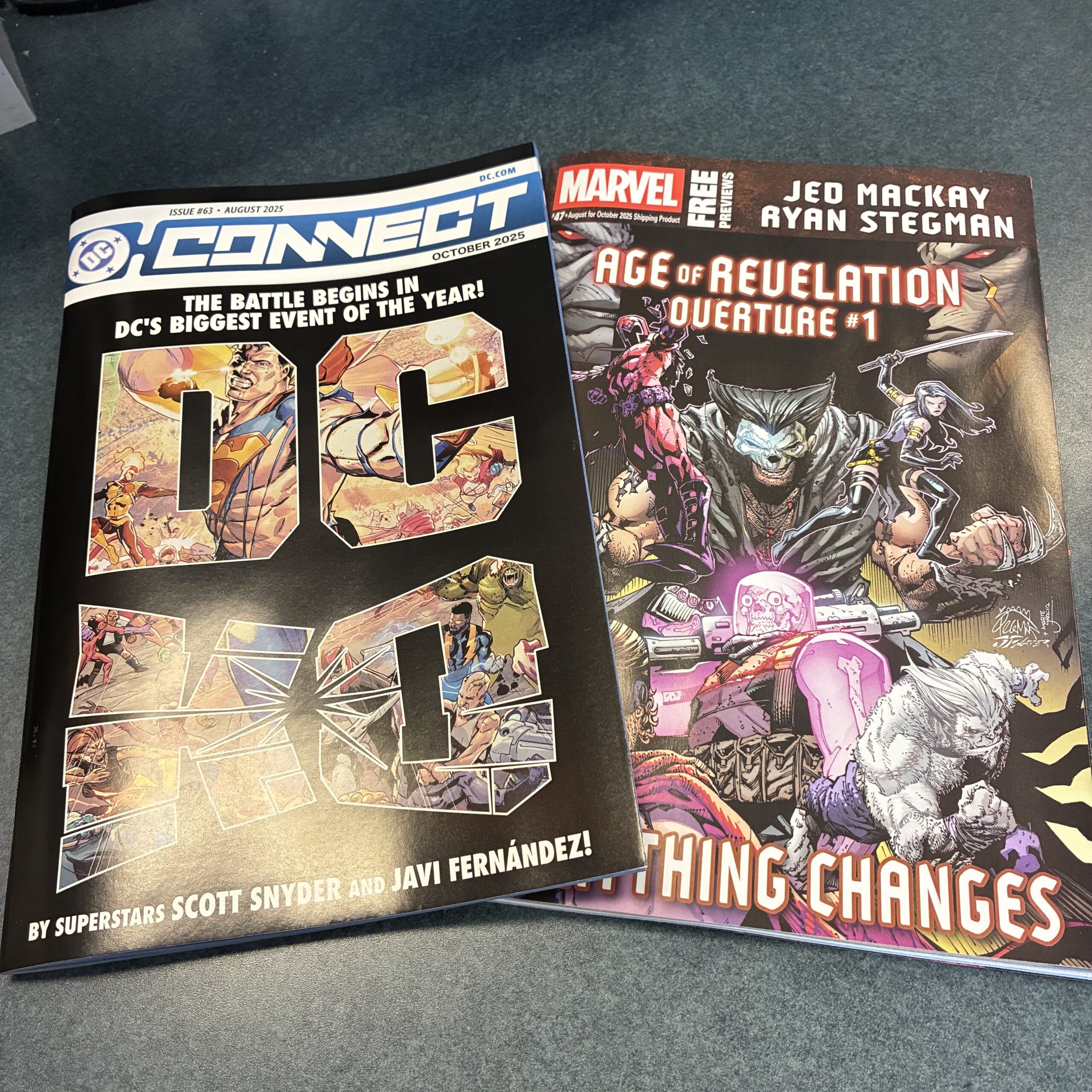 First, we do have Marvel and DC previews in now, along with Dynamite. We’ve been asking you to take a look at your pull lists to clean them up, so we will gladly get you a printout to look over. We’re trying to tighten up our orders since publishers are moving to other distributors after Diamond’s bankruptcy, so please take a copy of the free previews the companies send us, and let us know as soon as possible what new titles you’d like to add.