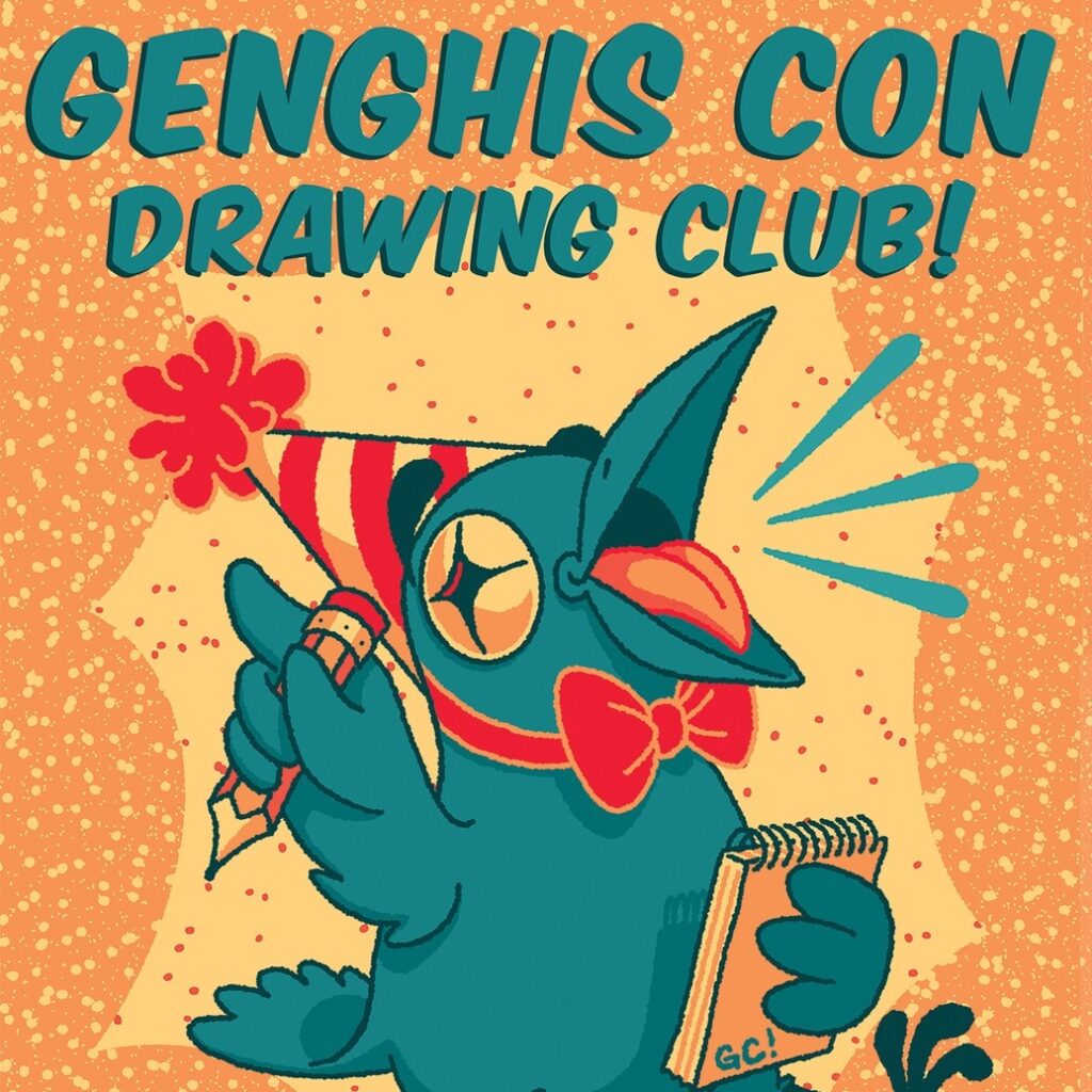 Genghis Con will also be hosting a Drawing Club in the foyer next to the shop that night at about the same time, 7pm to 10pm. All are welcome to hang out and draw, and meet other local artists in a casual setting.