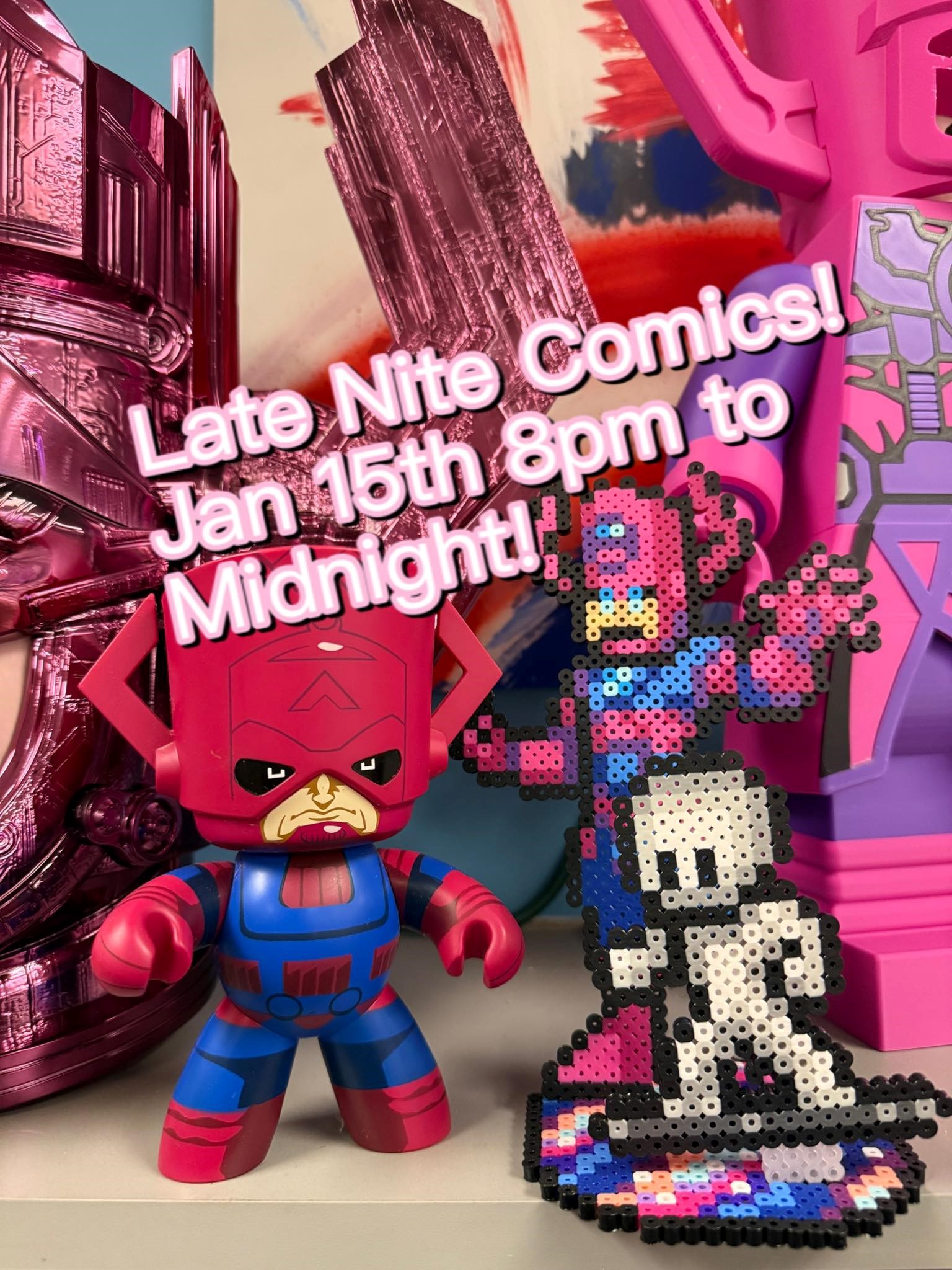 This Thursday! 8pm to midnight! It’s the return of Late Nite Comics! This is the annual dollar stock clear out event, so every dollar book we have out for Late Nite will be 50 cents each! Yes, only 50 cents! If you get 100 or more dollar books, they’ll only be 25 cents each! Back issues, including the wall, will be 50% off! You don’t want to miss this one!