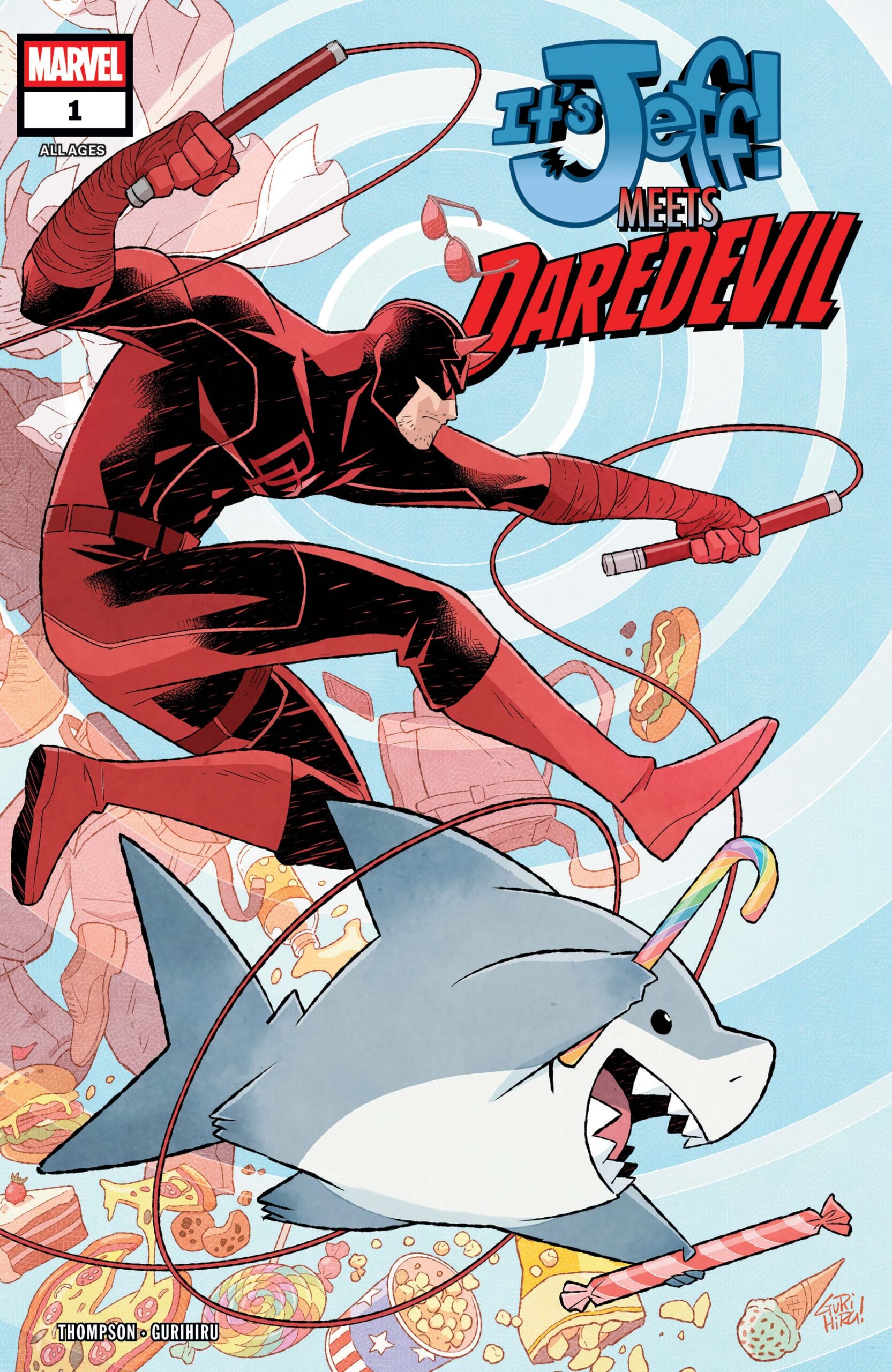 It’s Jeff! He’s back! Hooray! No other book will come close to the adorableness and massive cuteness that is contained in It’s Jeff Meet Daredevil! The Daredevil story by Kelly Thompson and Gurihiru is brand new for this issue, and the latest season of the digital Jeff comics are printed here for the first time! Jeff goes to court! Jeff versus Hulk! Jeff needs to take his medicine! Jeff goes to the waterpark! Jeff wins the lottery! Jeff goes to the pet groomer!