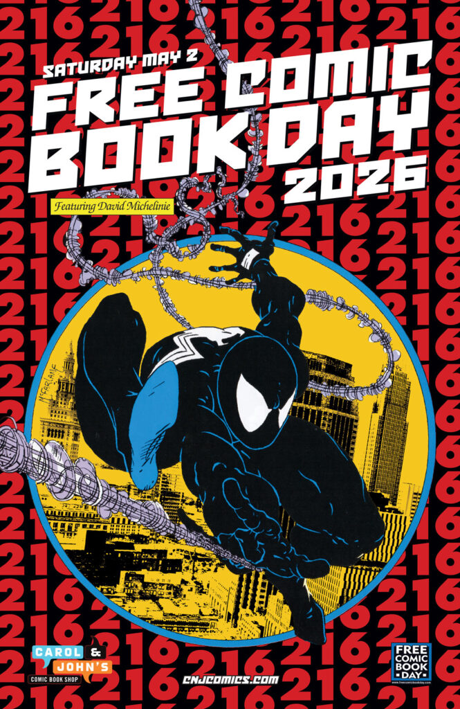 The David Michelinie signing is coming up on Thursday the 30th at 6pm! We’re almost sold out of VIP tickets for the event, so let us know ASAP if you’d like one. They are $50, and you get five free signatures with that. If you’d like more, they’re $10 each after that, and it all goes to David’s local cat rescue, Purring Pals! John is moderating the Q & A with Michelinie at 6:30pm, the signing is after, and you can also pick up your FCBD books that night!