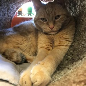Winston is hot and cold. Typical cat. He’ll either meet you at the door or be too “busy” napping. He prefers head scratches over butt scratches and is never shy about reminding you of mealtime. He’s constantly in search of a blue vest that would suit his greeter role but has no problem trying on other costumes in the meantime. He supremely enjoys hosting events that feature local artists and all of their new stuff. His existence is sweet and colorful and he has absolutely no complaints.